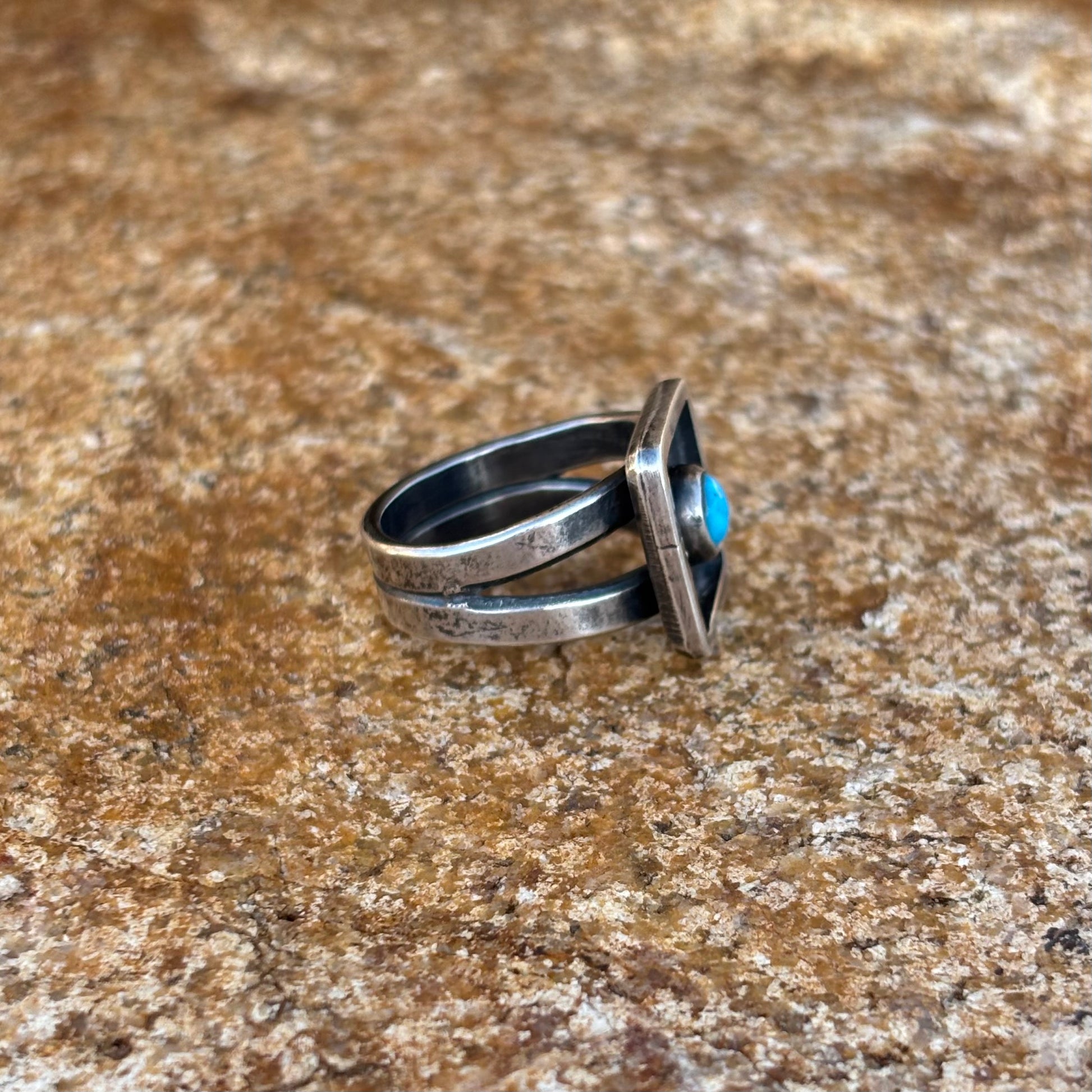 Square shadow box ring with turquoise (size 7 1/4)